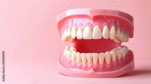 Fototapeta premium A dental model illustrates dental implants prominently, highlighting the importance of restoring oral functionality and aesthetics effectively
