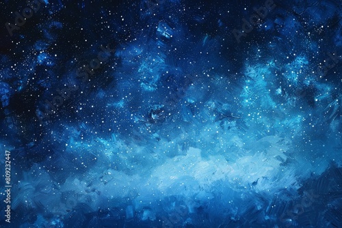 Fototapeta premium A depiction of a night sky filled with twinkling stars in a painting, A dreamy interpretation of a starry night sky with shades of blue and twinkling stars against a midnight blue background