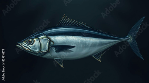Fototapeta premium A depiction of a tuna fish in a strong moody style, characterized by low...