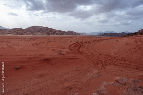 © Ryszard, Fototapeta premium A desert landscape with a cloudy sky in the background