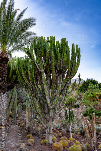 © Lu, Fototapeta premium A desert landscape with a large cactus tree in the foreground