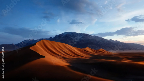 © mila103, Naklejka premium A desert landscape with a mountain in the background