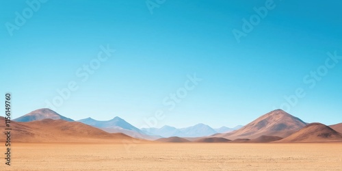 © Andrii Zastrozhnov, Fototapeta premium A desert landscape with mountains in the background. The sky is clear and blue. The scene is peaceful and serene