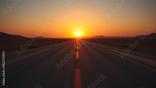 Fototapeta premium A desert road splits under a golden sunset, creating a striking contrast with...