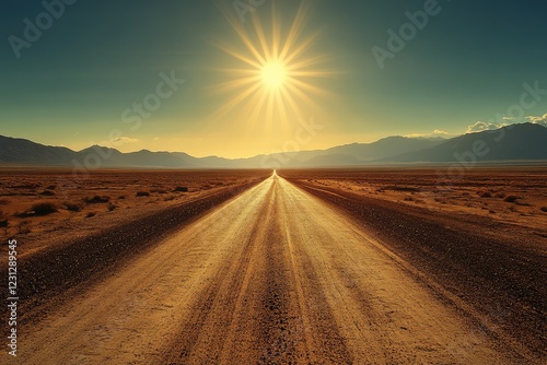 Naklejka premium A desert road stretching endlessly into the horizon under the blazing sun,...