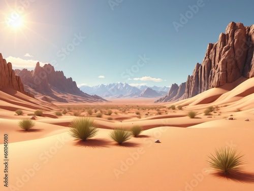 © Pixel Matrix, Naklejka premium A Desert Scene With A Mountain Range In The Background