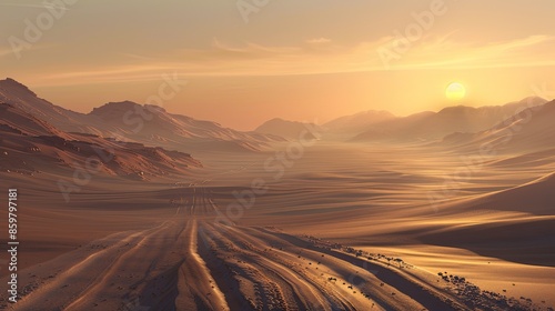 © EUT, Naklejka premium A desert scene with a sun in the sky