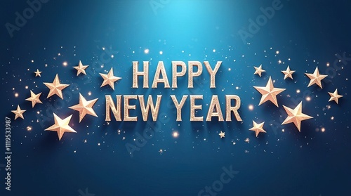 © Pham Ty, Naklejka premium A design for Happy New Year card, banner, backdrop with HAPPY NEW YEAR texts in the center, around by stars and snowflakes