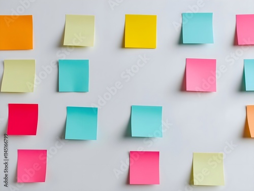 © lareyna, Fototapeta premium a design with colorful sticky notes and a white backdrop