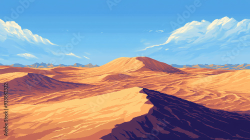 © Yaroslav Stepannikov, Naklejka premium A desolate stretch of dunes with eerie wind patterns swirling through the sand , pixel art, game assets