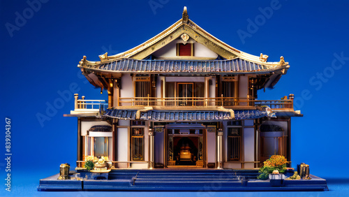Fototapeta premium A detailed and intricately designed model of a two-story house made of...