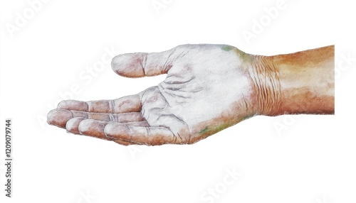 Fototapeta premium A detailed, artistic depiction of an open hand, showcasing intricate textures and colors against a white background