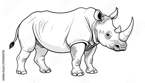 © kijang, Fototapeta premium A detailed black and white illustration of a rhinoceros standing