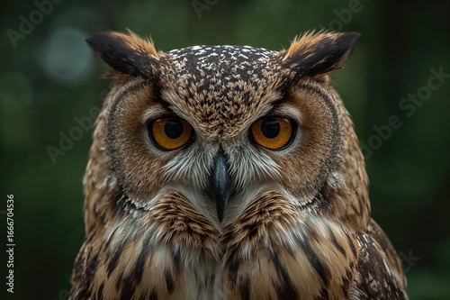 © vxnaghiyev, Fototapeta premium A detailed close-up of a Eurasian Eagle Owl's piercing gaze