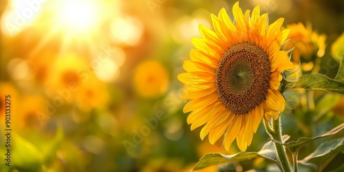 © StockUp, Fototapeta premium A detailed close-up of a glowing sunflower head, set against a golden, sun-drenched background evoking warmth and energy.