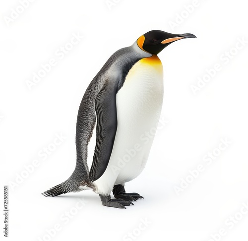 Fototapeta premium A detailed close-up of a King Penguin, showcasing its vibrant colors and intricate feather patterns on a white background.