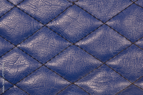 Obraz premium A detailed close-up of a luxurious deep blue, textured faux leather surface with a distinct diamond-shaped quilted stitching pattern, ideal for a background.