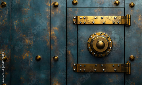 Fototapeta premium A detailed close-up of a metallic door with brass accents and rivets.