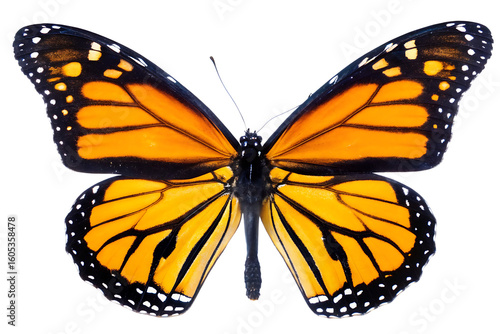 © Hamim, Fototapeta premium a detailed close up of a vibrant monarch butterfly isolated on white background, png, ai generated.