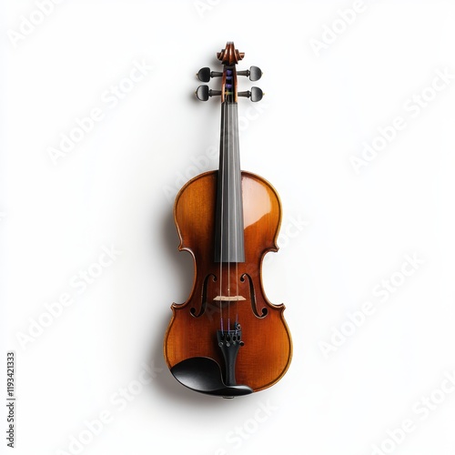 Fototapeta premium A detailed close-up of a violin resting on a white surface, accompanied by a...