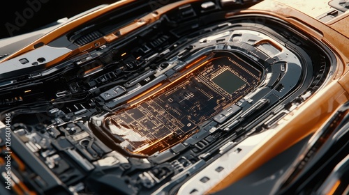© Sampao, Fototapeta premium A detailed close-up of an ultrasound probe's sensor area, showing intricate engineering.