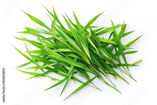 © Sudipta, Fototapeta premium A detailed close-up of cut wild grass, highlighting individual blades and their vibrant green hues, isolated on a clean white background, top view