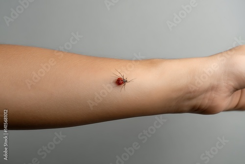 Obraz premium A detailed close-up photograph showcasing a tick on human skin, highlighting the insect's small size and potential health risks.