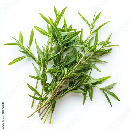 © Diffin, Fototapeta premium A detailed close-up showcasing a cluster of vibrant green leaves resting on a clean white surface, highlighting their texture and color contrast.