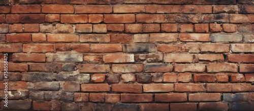 Fototapeta premium A detailed closeup of a brown brick wall showcasing numerous rectangular...