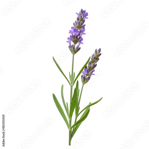 © Ayesha, Fototapeta premium A detailed closeup of two lavender sprigs against a black background