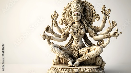 © Mr image, Fototapeta premium 36. "A detailed 3D image of the Hindu Durga statue, elaborately crafted with intricate designs and textures, isolated on a pristine white background.