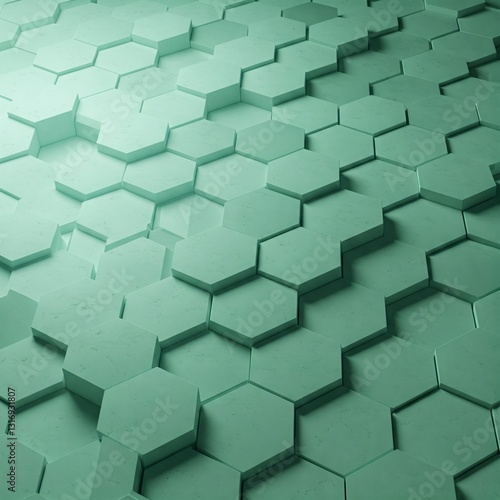 © Metehan, Obraz premium A detailed 3D render of a mint-green honeycomb structure with a shadow gradient, perfect for modern abstract backgrounds.