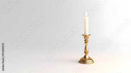 © Mr image, Naklejka premium 83. A detailed 3D render of a traditional brass candlestick with a lit candle, isolated on a pristine white background