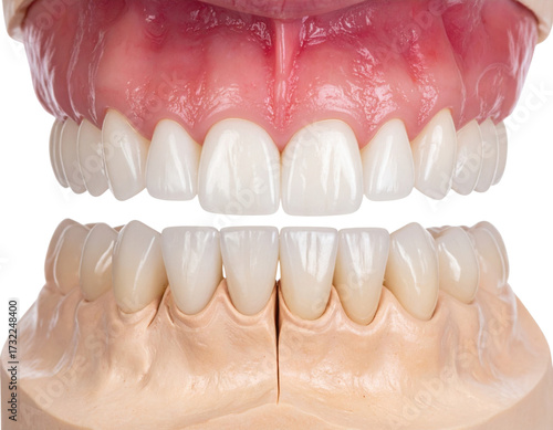 Obraz premium A detailed dental comparison showcasing upper and lower teeth, highlighting...