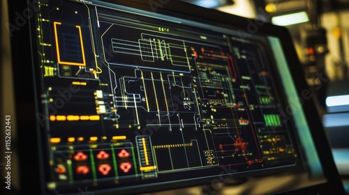 © gentho, Obraz premium A detailed digital interface displaying circuit designs and data flows.