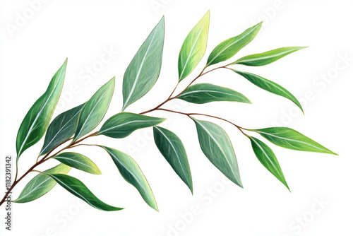 Obraz premium A detailed illustration features a branch adorned with various green leaves,...