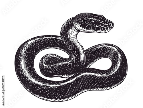 © sornram, Obraz premium A detailed illustration of a black snake, showcasing its scales and posture, perfect for educational or artistic purposes.