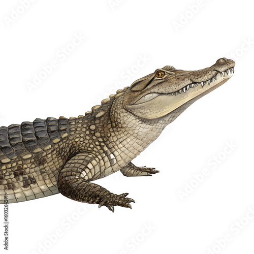 Obraz premium A detailed illustration of a crocodile with textured skin and sharp teeth....