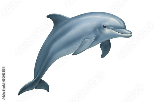 © Rifqi, Fototapeta premium A detailed illustration of a dolphin leaping through the air against a transparent background, concept for marine life, ocean wildlife, and aquatic animal designs