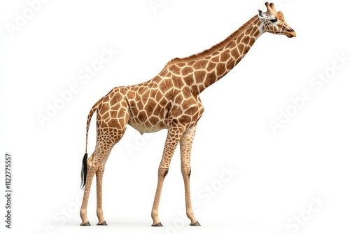 © Anjali, Fototapeta premium A detailed illustration of a giraffe standing tall, isolated against a pure white background for a striking visual.