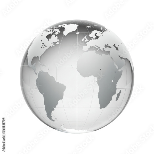 © Wong, Naklejka premium A detailed illustration of a globe showcasing continents in grayscale with a plain background