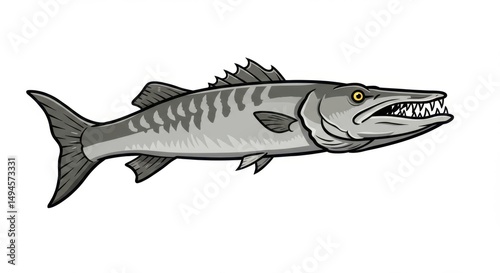 Fototapeta premium A Detailed Illustration of a Great Barracuda Fish: Sharp Teeth, Powerful Body, Aquatic Predator