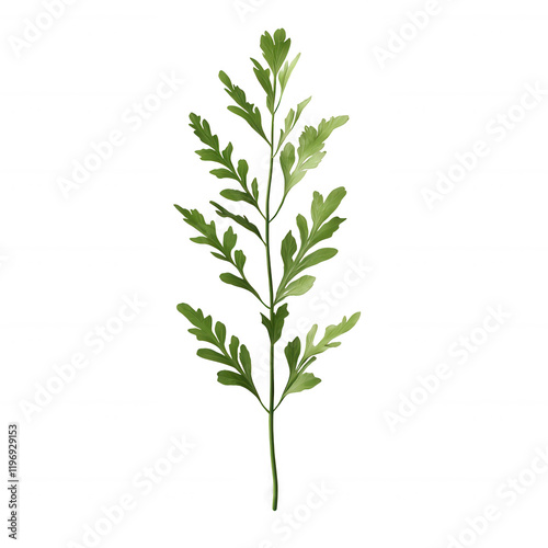 © kiimoshi, Fototapeta premium A detailed illustration of a green leafy plant branch showcasing unique leaf patterns., isolated on a transparent background.