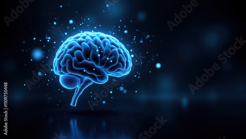 © Tameem, Fototapeta premium A detailed illustration of a human brain with an intricate neural network, symbolizing artificial intelligence or mental cognition.