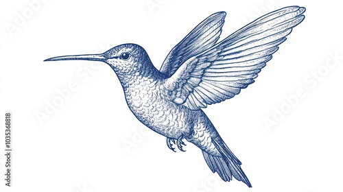 Obraz premium A detailed illustration of a hummingbird in flight, showcasing its wings and delicate features.
