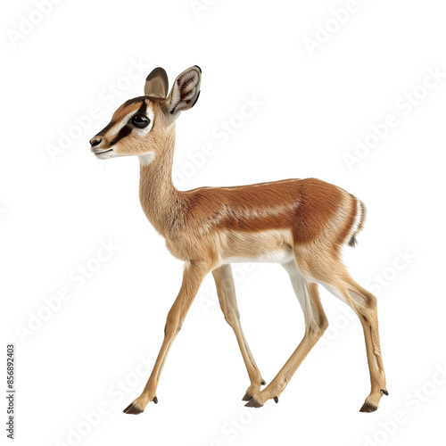 © Jenjira, Fototapeta premium A detailed illustration of a young deer standing and looking to the side on a white background. Perfect for nature and wildlife projects.