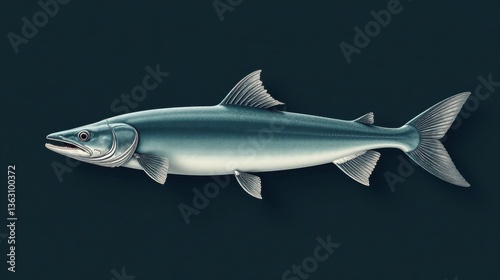 © Sumrit, Fototapeta premium A Detailed Illustration of an Aquatic Animal, Displaying its Anatomical Features, Scales, and Fins, Against a Dark Background