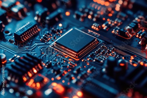 © Alla, Fototapeta premium A detailed image of a computer motherboard components