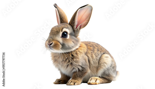 © Nur, Obraz premium A detailed image of a fluffy brown rabbit, looking slightly left, set against a transparent background