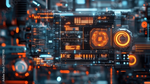 Fototapeta premium A detailed interface demonstrating robotic process automation, with a focus...
